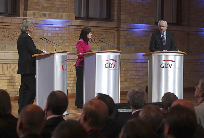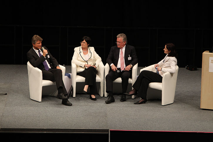 u.a. mit Weihbischof em. Hans-Georg Koitz. 20. Juni 2012 | FestaktEröffnung Deutscher Stiftungstag 2012 – ErfurtFestakt u.a. mit Verleihung Goldene Stiftermedaille an Friede Springer und Podium mit Fritz Brickwedde, DBU, Christine Lieberknecht, CDU und Hans-
